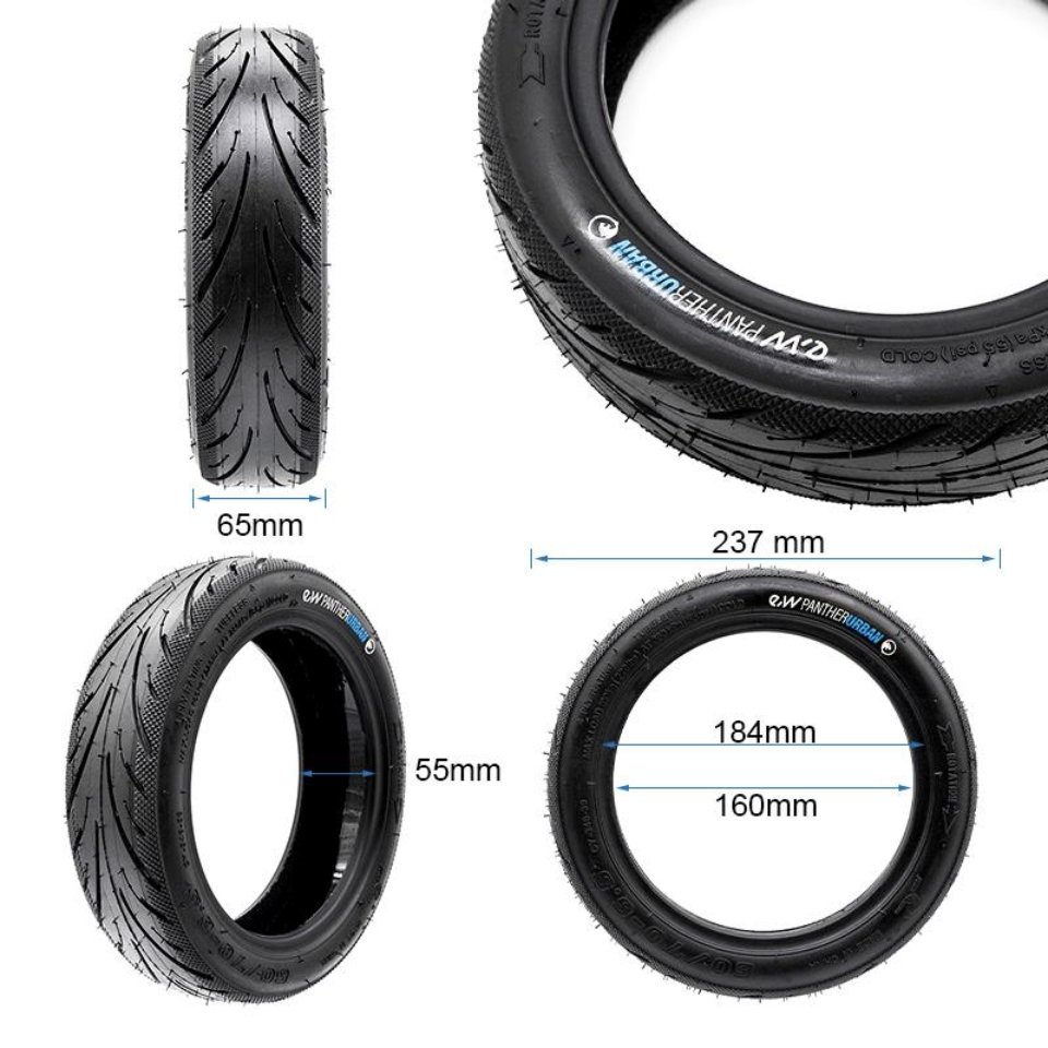 Der Ewheel PantherUrban Tubeless Reifen 60/70-6.5 ist ein gängiger Standard für viele 10-Zoll-E-Scooter mit schlauchlosen Reifen.